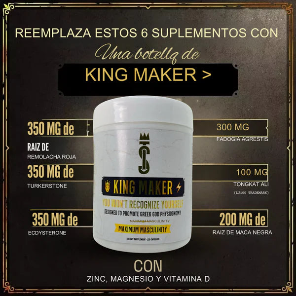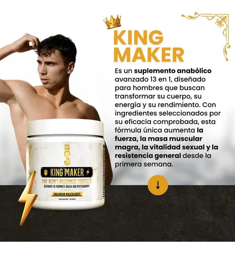 King Maker® es un suplemento 13-en-1 diseñado para hombres que buscan maximizar su rendimiento físico y mental de forma natural.
