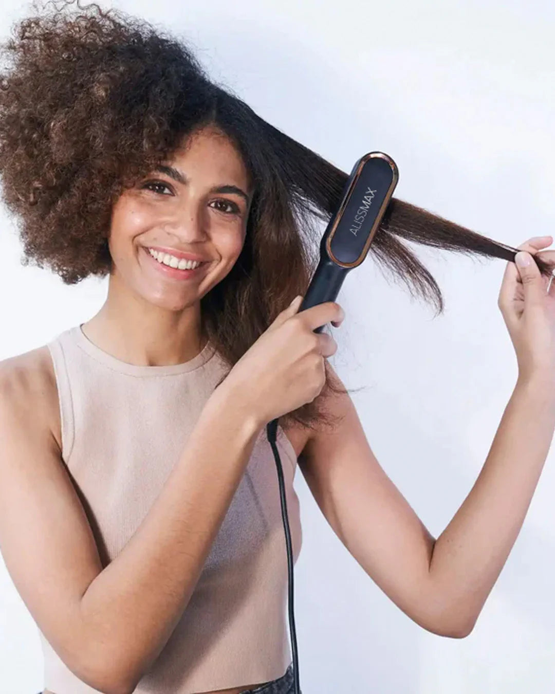 Un peine eléctrico alisador con tecnología anti-frizz, control de temperatura y diseño portátil. ¡Dile adiós al frizz y dale la bienvenida a un cabello suave, brillante y sin esfuerzo!